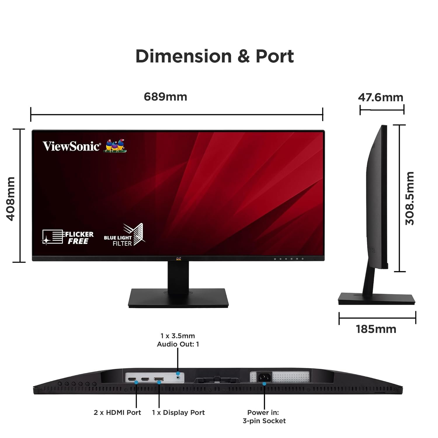 The ViewSonic VA2932-MHD is a 29″ UltraWide WFHD (2560 × 1080) IPS monitor designed for multitasking and immersive viewing. With a 21:9 aspect ratio, wide color coverage, and flexible connectivity, it is ideal for professionals, creators, and entertainment enthusiasts seeking more screen space and vibrant visuals in a compact form factor.