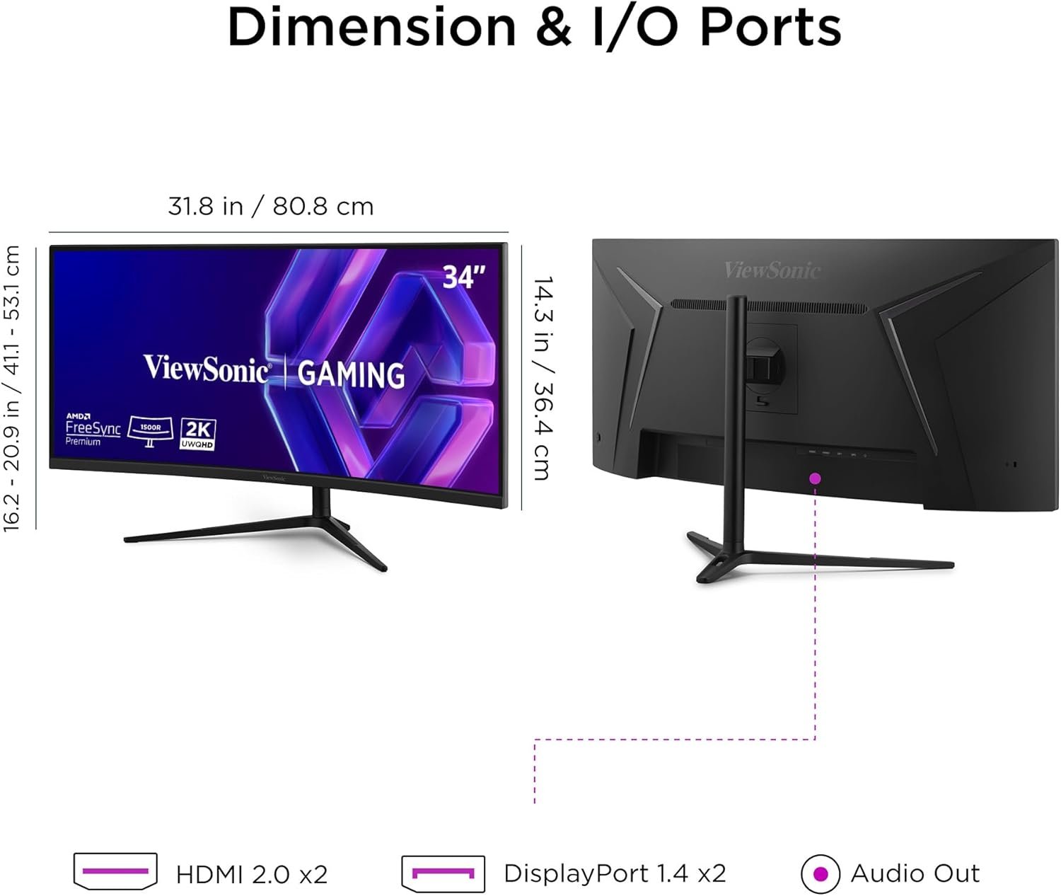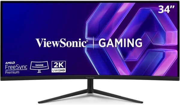 The ViewSonic VX3418C-2K is a 34″ Ultra-Wide QHD curved gaming monitor designed for immersive play and multitasking. With a 180Hz refresh rate, 1ms response time, and Adaptive Sync technology, it delivers fluid motion and sharp detail. Its curved VA panel enhances depth and field of view, making it ideal for competitive gaming and cinematic entertainment.