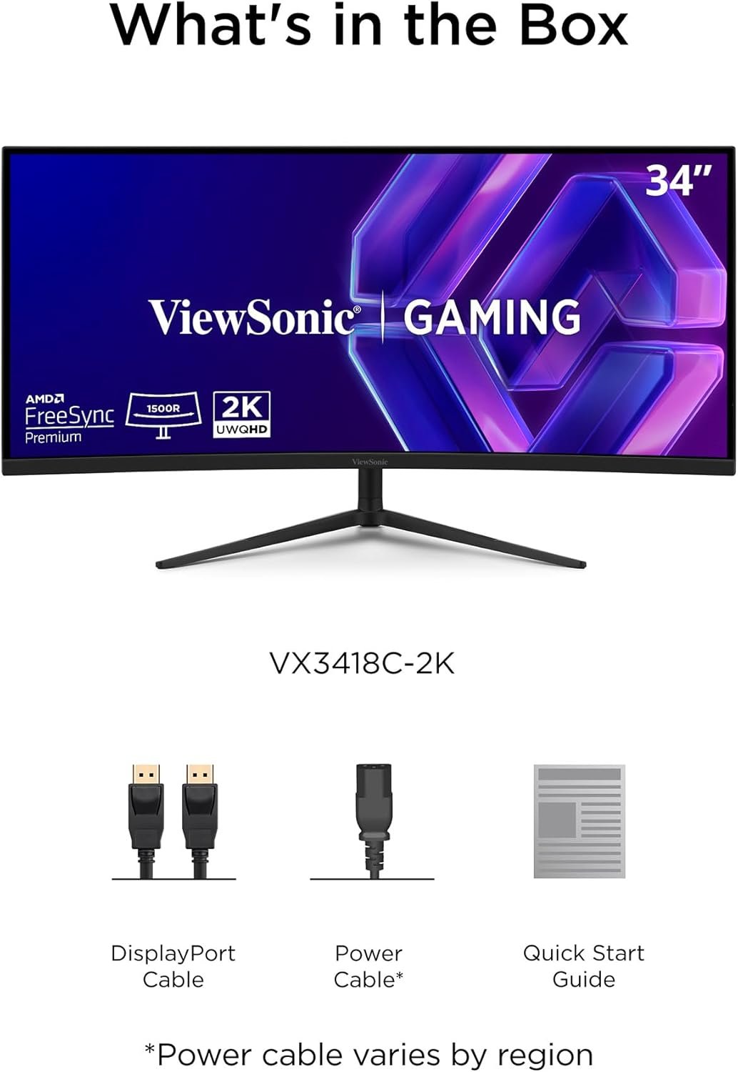 ViewSonic VX3418C-2K 34″ UWQHD Curved VA 180Hz Gaming Monitor with Adaptive Sync and 1ms response time