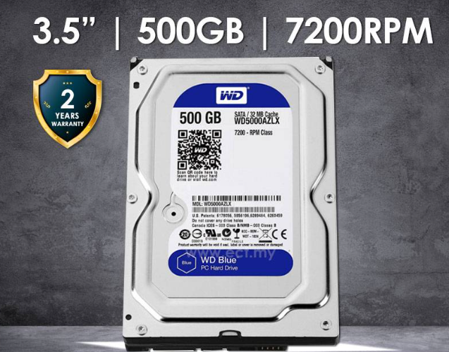 Western Digital WD5000AZLX WD Blue 3.5″ 500GB PC Desktop HDD β 32MB Cache, 7200RPM, SATA 6Gb/s