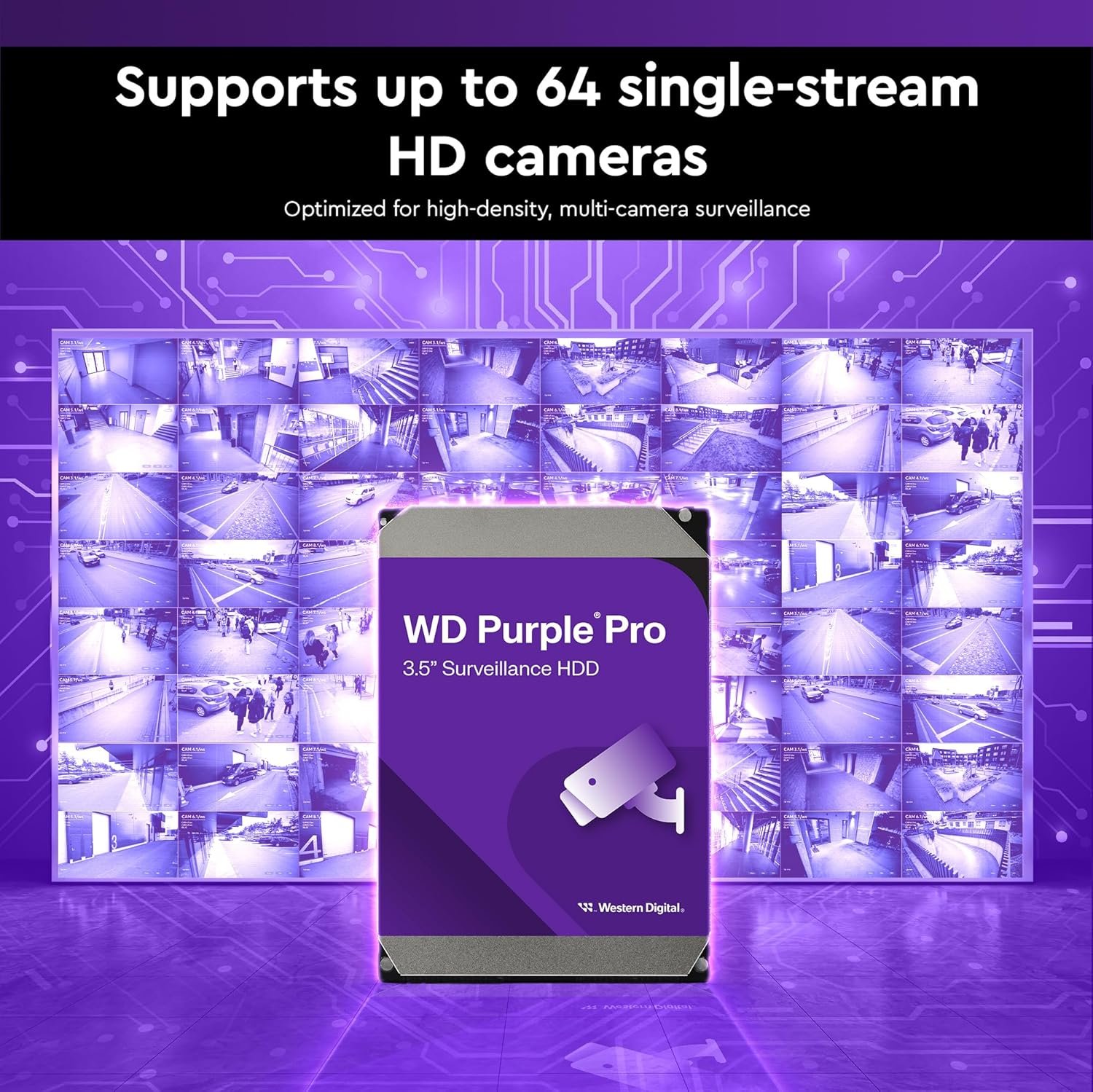 The WD Purple Pro 22TB Surveillance HDD is designed for enterprise‑level security systems, offering massive capacity, advanced workload handling, and optimized performance for AI‑enabled recorders and video analytics. Built for continuous 24/7 operation, it supports multiple high‑definition camera streams, making it ideal for smart city, enterprise, and large‑scale surveillance environments.