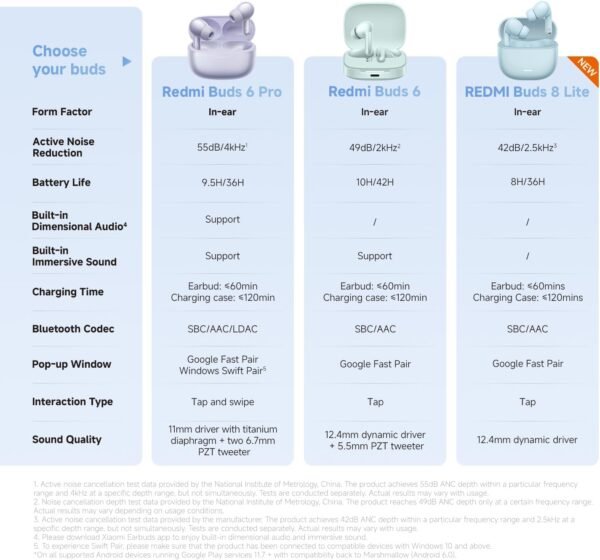 | Battery Life (Earbuds) | Up to 6.5 hours |