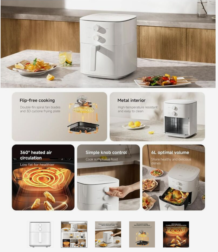 Cook smarter and healthier with the Xiaomi Air Fryer Essential 6L GB โ spacious, efficient, and built for modern kitchens.