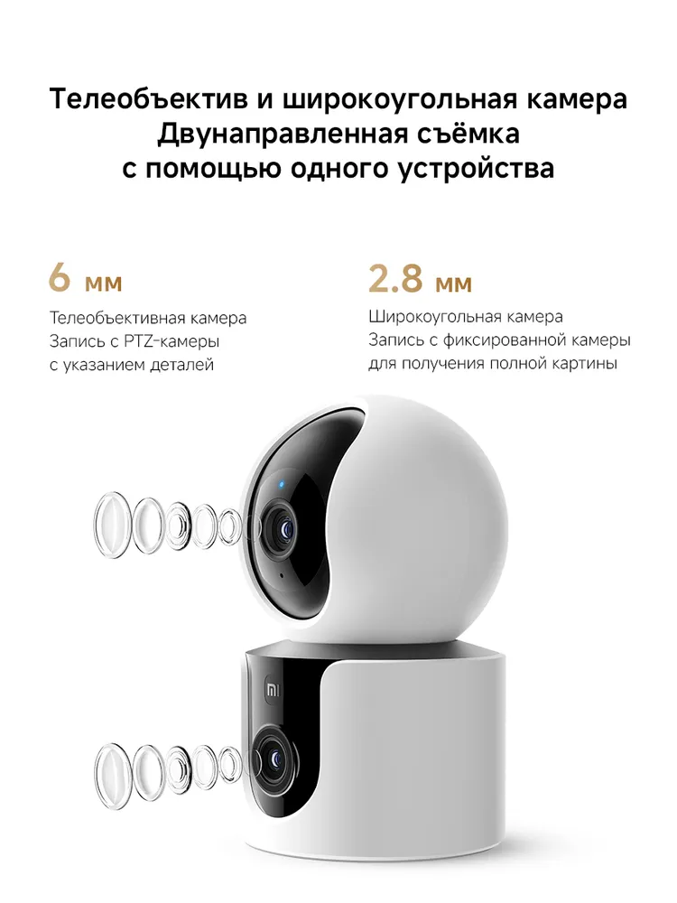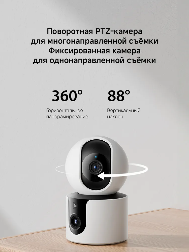 Xiaomi BHR9166EU ā Xiaomi Smart Camera C300 Dual EU, dual-lens system, 2K UHD resolution, 360° rotation, AI detection, privacy protection