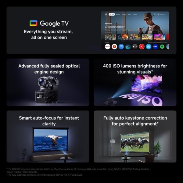 The Xiaomi Smart Projector L1 Pro UK delivers a premium home cinema experience with Full HD resolution, smart Android TV features, and powerful built-in audio. Compact and portable, it offers versatile projection for movies, gaming, and presentations with seamless connectivity options.