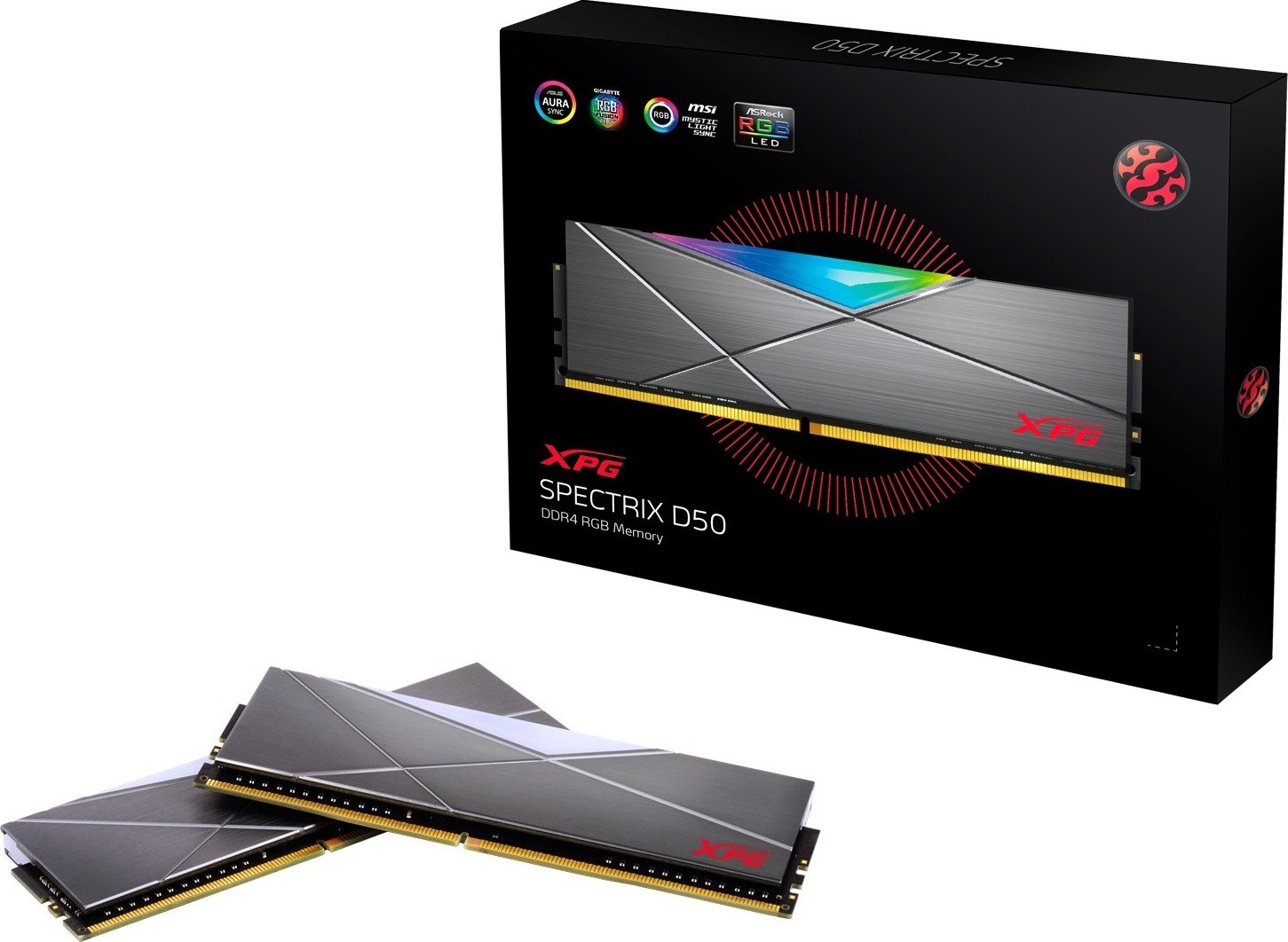 XPG SPECTRIX D50 DDR4-3600 CL18 16GB (2x8GB) Kit – AX4U360038G18A-DT50, PC4-28800, 288-Pin UDIMM, Grey with RGB